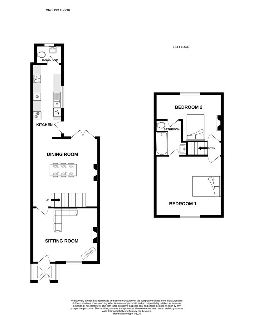 The accommodation is well laid out and thoughtfully presented, comprising an entrance porch, cosy sitting room, dining room with double doors opening to the rear garden, a fully fitted kitchen and cloakroom on the ground floor. The first floor features two good sized double bedrooms together with a smart Jack & Jill bathroom.