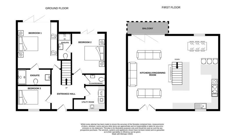 The ground floor provides two double en-suite bedrooms, a further bedroom/study, cloakroom/WC and utility room.